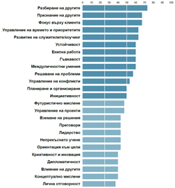 Компетенциите се измерват чрез изследването на 23 личностни умения, основани на проучвания и пряко свързани с бизнес средата. Те се определят на три нива: много развити, средно развити, нуждаят се от развитие. Когато се използват във връзка с job benchmark, Компетенциите гарантират, че необходимите умения на човека ще паснат на „меките“ умения, които се изискват за съответната работа.