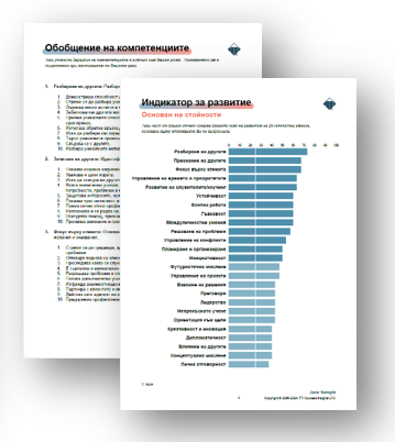 Инструментите на TTI Success Insights, измерващи Компетенциите, изследват нивото на развитие на 23 уникални личностни умения, като ги подреждат от най-развити до най-малко развити.