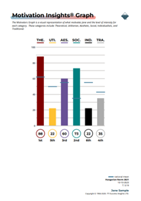 Инструментите на TTI Success Insights, измерващи Мотиваторите, изследват относителните предпочитания на следните 6 основни групи интереси (или Мотиватори – какво е важно за нас в живота):