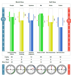 Bystrosť sa hodnotí na základe troch dimenzií myslenia, analyzujúc pohľad na svet aj na seba samého: